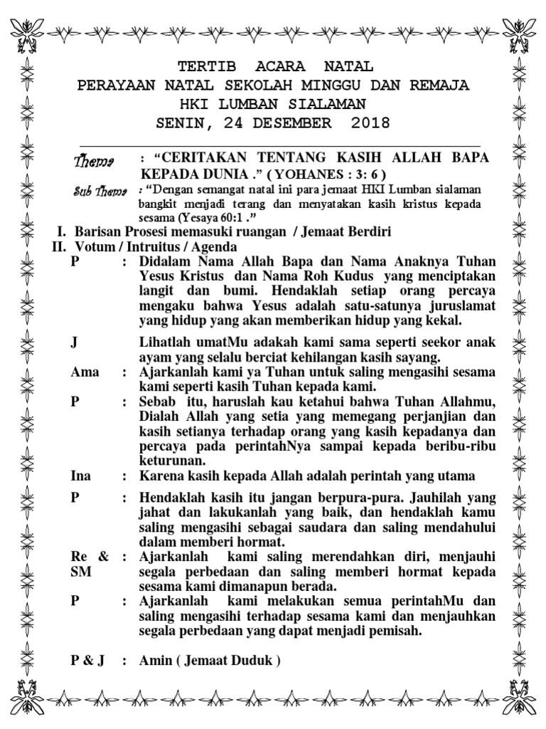 Tertib Acara Natal Sekolah Minggu : Tertib Acara Perayaan Natal Simanjuntak - Tertib acara natal sekolah minggu.. Dalam ibadah hari minggu kita selalu menaikkan pujian bagi tuhan, alangkah indahnya jika hidup. Tertib acara natal sekolah minggu. Ketika mengadakan acara natal maka biasanya pihak sekolah akan memberikan undangan bacaan i bacaan. Contoh susunan acara natal docx. Doc acara natal sekolah minggu hkbp tridarma ressort.